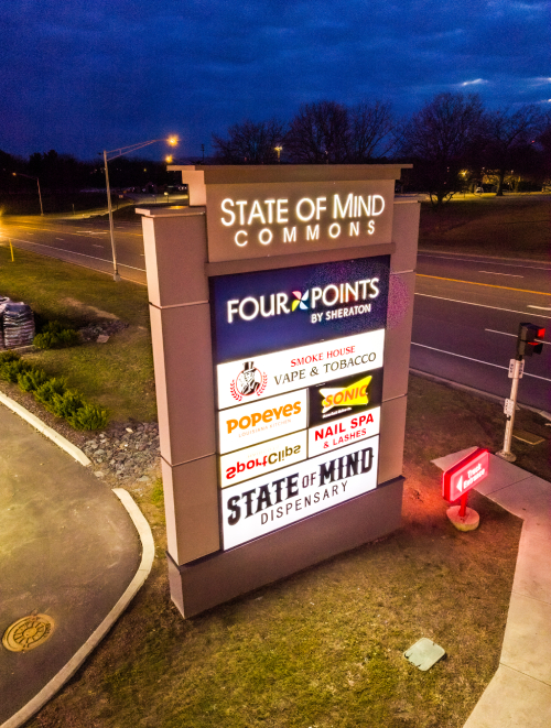 State of Mind Commons is your destination for convenience, comfort, and quality services, bringing together dining, shopping, wellness, and hospitality in one location. Whether you’re staying at Four Points by Sheraton, enjoying a meal at Popeyes or Sonic Drive-In, pampering yourself at Nail Spa & Lashes, exploring Smoke House Vape & Tobacco, or visiting State of Mind Dispensary, everything you need is right here.